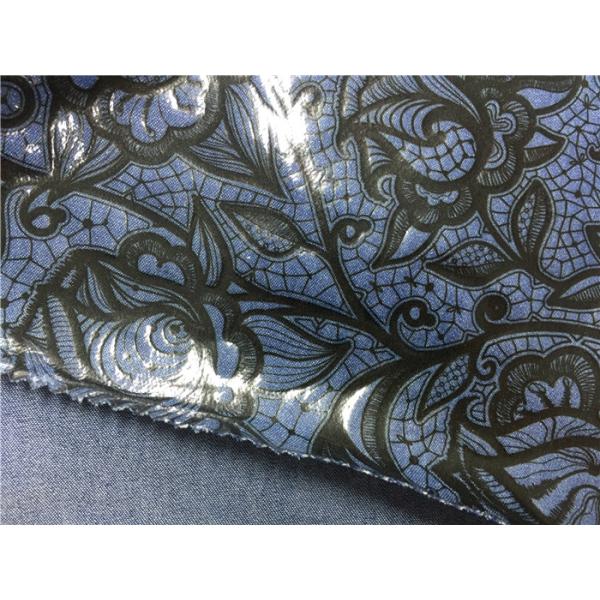Blue Tpu Leather Bonded With Printed Black Flowers Customized Width Images |